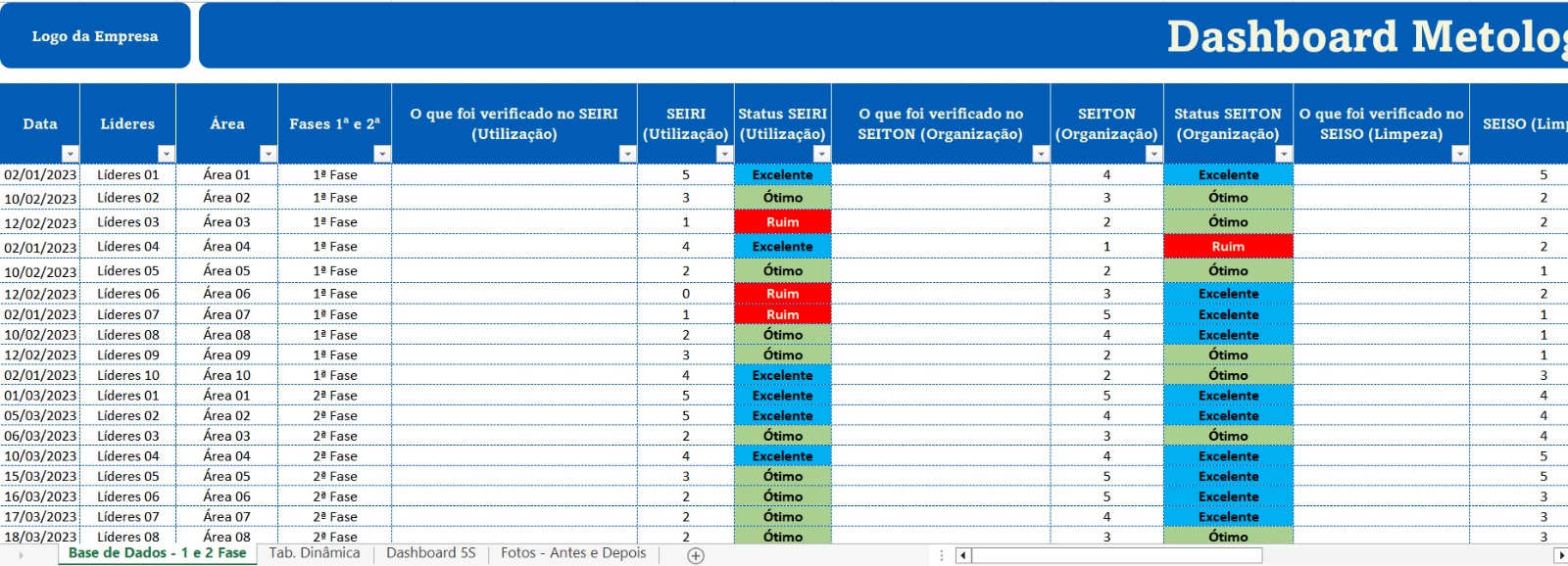 * % SEISO (Limpeza)- Antes e Depois;